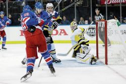 NEW YORK (AP) – Kaapo Kakko scored his second goal of the game 2:36 into overtime to give the New York Rangers a 3-2 victory over the Pittsburgh Penguins on Tuesday night. Adam Fox had a goal in regulation and set up Kakko’s winner as New York recovered after blowing a two-goal lead and improved to 5-1-1 in its last seven games. Alexandar Georgiev, getting the start after Henrik Lundqvist played the previous three games, finished with 30 saves. In the extra period, Fox brought the puck up the left side, skated toward the middle and sent a pass to the left doorstep, where the Finnish rookie redirected the puck past Penguins goalie Matt Murray for his sixth of the season. Justin Schultz and Jared McCann scored for the short-handed Penguins, who earned at least a point for the sixth time in seven games (4-1-2). Murray, making his seventh straight start and 15th in 18 games this season, stopped 24 shots. The Penguins were without star center Sidney Crosby due to a lower body injury. The two-time MVP did not travel with the team to New York after leaving in the third period of a 3-2 shootout win over Chicago on Saturday. Pittsburgh was also missing defenseman Kris Letang for the third straight game with a lower body injury and forward Patric Hornqvist (injured reserve) for the fourth in a row. With the score tied 2-all, both teams had chances in the third, with Georgiev and Murray making great stops on both ends. The Rangers went on their second power play with 4:10 left after Brian Dumoulin was whistled for tripping Greg McKegg, but managed just one shot on goal as Pittsburgh killed off its 16th straight penalty and 22nd in the last 23. In the closing seconds, Dumoulin had a shot blocked by Rangers defenseman Jacob Trouba and his follow was stopped by Georgiev to send the game to overtime. The Penguins got off to another slow start, trailing 2-0 while getting outshot 11-8 in the first period. It marked the 12th time in 17 games Pittsburgh gave up the first goal of the game. And once again, the Penguins got going in the second. Schultz got Pittsburgh on the scoreboard at 1:13 on the team’s second shot of the period as he got a pass from Evgeni Malkin, skated through the left circle and fired it past Georgiev for is second. The Penguins tied it with 7:27 left in the second as Dominik Simon mishit the puck on a shot off his own skate and then passed to McCann, who fired it past Georgiev for his sixth. It ended Pittsburgh’s 11-game drought without a power-play goal, and snapped an 0-for-28 skid with the man advantage.