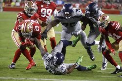 SANTA CLARA, Calif. (AP) – Jason Myers kicked a 42-yard field goal after Chase McLaughlin missed a kick earlier in overtime, and the Seattle Seahawks handed the San Francisco 49ers their first loss of the season with a 27-24 victory on Monday night. Myers gave Seattle (8-2) its second straight overtime win after Russell Wilson got the Seahawks into positon with an 18-yard scramble on third-and-3. After being iced by a timeout, Myers delivered one week after missing two field goals and an extra point, putting Seattle right in the thick of the NFC West race with San Francisco (8-1). The Seahawks blew a chance to win the game on the opening possession of overtime when Wilson was intercepted at the 4 by Dre Greenlaw. It was Wilson’s second interception of the season.