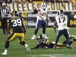 PITTSBURGH (AP) – The Steelers defense spoiled Aaron Donald’s homecoming and derailed the Los Angeles Rams’ momentum in the process. The Steelers forced four turnovers – including a 43-yard fumble return for a touchdown by safety Minkah Fitzpatrick – in an ugly 17-12 victory on Sunday that pushed their winning streak to four games and dealt the Rams’ chances of chasing down Seattle and San Francisco in the NFC West a serious blow. Donald, a Pittsburgh native, sacked the Steelers’ Mason Rudolph for a safety in his first appearance in his hometown since the Rams took him in the first round of the 2014 draft. Linebacker Dante Fowler scored Los Angeles’ lone touchdown on a 26-yard fumble return on the second snap of the game. But the Rams’ offense did little against a Steelers defense that has become the team’s identity after losing Ben Roethlisberger to a season-ending right elbow injury in Week 2. Jared Goff completed 22 of 40 passes for 243 yards, none of them to leading receiver Cooper Kupp. The Rams (5-4) converted just 1 of 14 third downs and came up empty on a pair of last-gasp drives in the final two minutes. Goff’s fourth-down heave to the end zone intended for Josh Reynolds fell incomplete with 1:25 to go. Los Angeles got the ball back with 59 seconds to play but Goff’s pass to Robert Woods was tipped. Fitzpatrick ran underneath it for the game-sealing interception and seventh takeaway since the Steelers acquired him from Miami in September for a 2020 first-round pick. At the moment, it looks like draft capital well spent. Rudolph completed 22 of 38 passes for 242 yards with a touchdown, stats that would have been considerably better if not for a handful of drops that prevented the Steelers (5-4) from gaining any sort of traction for long stretches. Rudolph became the ninth quarterback since the 1970 merger to throw a touchdown in each of his first seven games when he found James Washington for a 3-yard score in the first quarter, but the Steelers once again relied on their defense to move over .500 for the first time this season. The Steelers managed just 15 turnovers in 2018. They have produced 26 through nine games in 2019, helping them stay afloat following a 1-4 start while Rudolph and the offense searches for solid footing.