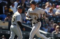 DENVER (AP) – Steven Brault came into the dugout after his first big league home run ready to celebrate with his teammates. Instead, they greeted him in jest with silence. It was only fitting after he quieted the Colorado Rockies’ bats for most of the afternoon. Brault hit a towering shot into the second deck and pitched effectively into the seventh inning to lead the Pittsburgh Pirates over the Rockies 6-2 on Sunday for a four-game sweep. Adam Frazier homered on the first pitch of the game, the second straight day the Pirates did that. Kevin Newman connected against Tim Melville on Saturday night, and Newman also led off Thursday’s game with a home run. It was the third time in major league history a team hit three leadoff homers in a four-game series. Pittsburgh had 63 hits and 37 runs at Coors Field over the weekend. Brault, who pitched three years at Regis University in Denver, socked a 441-foot solo homer that made it 3-1 in the seventh. He rounded the bases trying unsuccessfully to suppress a smile and was met with indifference when he got to the dugout. “That’s the longest silent treatment I’ve ever seen and everybody got mad at Trevor (Williams) for breaking it so early,” Brault said. “It’s cool to get the silent treatment, that’s a cool feeling.” Brault (4-3) allowed only one hit until Nolan Arenado lined a two-out fastball into the seats in left field in the sixth for his 35th home run. Brault left in the seventh when the Rockies got a run on two hits and an error, but Richard Rodriguez got out of the jam by fanning Trevor Story. Brault allowed just one earned run and four hits in 6 1/3 innings. Josh Bell and Colin Moran each hit an RBI single for the Pirates. Bryan Reynolds had three hits. Pittsburgh could have scored more runs but Colorado cut down three baserunners in the first six innings. Reynolds was thrown out at home trying to score from first base on a double in the third, Starling Marte was picked off in the fifth when he broke for second too early, and Erik Gonzalez was thrown out trying to stretch a single in the sixth. That helped limit the damage for Jeff Hoffman (1-5), who was recalled from the minors before game. Hoffman lasted just two innings in his previous start for the Rockies but held Pittsburgh to two runs and nine hits over five innings Sunday. It wasn’t enough to prevent last-place Colorado from losing its sixth in a row.