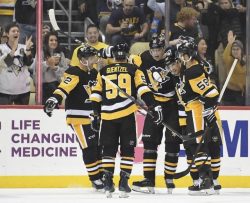PITTSBURGH (AP) – Conor Sheary scored twice against his old team and Carter Hutton stopped 26 shots in the Buffalo Sabres’ 3-1 victory over the Pittsburgh Penguins on Thursday night in the opener for both teams. Rasmus Dahlin also scored to help Buffalo give Ralph Krueger a victory in his Sabres coaching debut. Buffalo beat Pittsburgh in regulation for the first time since April 23, 2013. Sheary, who won two Stanley Cups with the Penguins, has four goals and six points in four games against his former team. Evgeni Malkin scored on the power play for Pittsburgh. Matt Murray made 38 saves. Pittsburgh had 15 wins in its past 18 games against the Sabres, dating to Oct. 5, 2013. The Penguins also previously won eight of nine home games against the Sabres and 11 of 15 since PPG Paints Arena opened in 2010-11.