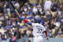 LOS ANGELES (AP) — Teoscar Hernández lined a tiebreaking homer to left field to lead off the eighth inning, Shohei Ohtani had a triple and two doubles, and the Los Angeles Dodgers beat the Pittsburgh Pirates 8-4 on Saturday night to snap a three-game skid. After Hernández took Colin Holderman (0-1) deep, pinch-hitter Kiké Hernández followed with a three-run home run against Joey Wentz, the eighth pinch homer of his career. The Pirates went ahead on 4-3 in the seventh on Bryan Reynolds’ RBI grounder. The Dodgers tied it in the bottom half on Ohtani’s run-scoringIn the bottom of the first, Ohtani doubled, Teoscar Hernández drove him in with a two-bagger and and Pirates second baseman Adam Frazier threw away Edman’s grounder for an error, allowing Hernández to score. double. Kirby Yates (1-0) worked a scoreless eighth. Oneil Cruz smacked Dodgers right-hander Roki Sasaki’s first pitch of the game over the center-field wall for his eighth homer of the season. Pittsburgh went ahead 3-2 in the fifth on Cruz’s 111 mph RBI single. Ohtani hit a one-out triple to right in the bottom of the sixth and scored on Freddie Freeman’s two-out single.