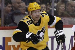 PITTSBURGH (AP) – Patric Hornqvist had two goals and an assist and the Pittsburgh Penguins defeated the Detroit Red Wings 5-1. Sidney Crosby scored his 11th of the season, Kris Letang added his 14th on the power play and Sam Lafferty also scored for Pittsburgh, which moved within one point of first-place Washington in the Metropolitan Division.