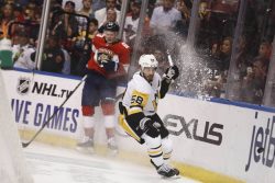 SUNRISE, Fla. (AP) – Jonathan Huberdeau had a goal and an assist to lift the Florida Panthers to a 4-2 victory over the Pittsburgh Penguins on Tuesday night. Denis Malgin had a goal and an assist, and Noel Acciari, and Frank Vatrano also scored goals for the Panthers. Sergei Bobrovsky stopped 22 shots. Aleksander Barkov had a pair of assists. Patric Hornqvist and Teddy Blueger scored for Pittsburgh. Matt Murray made 18 saves. The Panthers have won two of their past three games. After winning five in a row, the Penguins lost their second straight game. Leading 2-1, Huberdeau stretched the Panthers lead to 3-1 when he deflected a shot from Anton Stralman with 6:18 left in the third. The Penguins closed to 3-2 on Hornqvist’s goal.with 5:35 left, but Vatrano’s empty-net goal with 1:03 left made the score 4-2. Malgin put the Panthers ahead 2-1 when he took a pass from Huberdeau to the side of the crease and poked the puck into the near side with 2:00 left in the second. Acciari gave the Panthers a 1-0 lead on a flukey goal midway through the second period. Acciari shot from the high slot. Murray blocked the shot but the puck went straight up in the air and bounced off Murray’s back and into the net at 10:53. The Penguins answered about 63 seconds later on Blueger’s goal. Blueger took a drop pass from Jake Guentzel and tapped in the puck from in front at 11:57 to tie the score at 1.