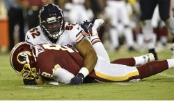 LANDOVER, Md. (AP) – Mitchell Trubisky threw his first three touchdown passes of the season, all to Taylor Gabriel in the second quarter, to finally get the Chicago Bears’ offense going and build a big lead that held up to beat the Washington Redskins 31-15 on Monday night. Trubisky lit up a porous Redskins defense on 25 of 31 passing for 231 yards in the offensive explosion he predicted would come this week. Chicago (2-1) had just a 1-yard touchdown run to show for its first two games before Trubisky and the passing attack broke out against Washington (0-3). The 2017 second overall pick who entered the night with a completion percentage of 58.3 and ranked near the bottom of the league in yards per attempt completed passes to nine different receivers. Trubisky had 173 yards in the first half alone before throwing an interception at the goal line in the third quarter. With scores of 1, 3 and 36 yards , Gabriel joined Mike Ditka in 1963 as the only Bears receivers with three TD catches in the first half of a game. Gabriel made six catches for 75 yards before leaving in the second half with a concussion. The Bears took advantage of five turnovers by Redskins quarterback Case Keenum: two interceptions by Ha Ha Clinton-Dix, including a pick six, another by Kyle Fuller and fumbles forced by Khalil Mack and Danny Trevathan. With the offense up to the defense’s speed in the first half, Chicago put up 28 points in two quarters after scoring a total of 19 the past two weeks, 12 of which came on field goals from Eddy Pineiro . Mack had two of the Bears’ four sacks to continue a dominant start by the defense that didn’t give up a Washington TD until midway through the third quarter. Keenum’s two TD passes came long after fans chanted for rookie quarterback Dwayne Haskins and booed the Redskins off the field at halftime.