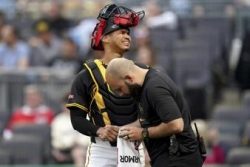 PITTSBURGH (AP) — The Pittsburgh Pirates have placed catcher/first baseman Endy Rodriguez on the 10-injured list with a lacerated right index finger. Rodriguez was catching when he got hurt during Monday night’s 10-3 victory over Washington. He was hit on the hand by a pitch in the dirt by Paul Skenes, and the injury required five stitches. The Pirates recalled right-hander Chase Shugart from Triple-A Indianapolis. Rodriguez has made nine starts at first base and five at catcher this season, hitting .178 with two RBIs. The injury leaves the Pirates thin at two positions.