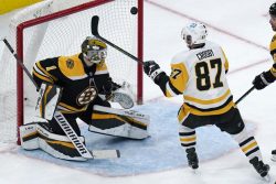 BOSTON (AP) – Sidney Crosby scored his 499th career regular-season goal as the Pittsburgh Penguins rallied from a two-goal deficit and beat the Boston Bruins 4-2. Danton Heinen scored twice in a 28-second span in the second period, and Crosby added another with 7:07 left in the frame, moving him one goal shy of joining Washington’s Alex Ovechkin as the only active players to score 500 goals in the regular season. Tristan Jarry stopped 43 shots for the Penguins, and Bryan Rust scored into an empty net with 1:29 left in the third as Pittsburgh snapped a four-game winless streak.