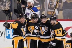 PITTSBURGH (AP) – Sidney Crosby and Evan Rodrigues scored 12 seconds apart in the third period, and the Pittsburgh Penguins rallied past the St. Louis Blues 5-3. Crosby scored his fifth, Rodrigues his 14th and Brock McGinn his ninth, as Pittsburgh scored three in the third to erase a 3-2 deficit. Bryan Rust also scored twice for the Penguins, who won their ninth straight. Casey DeSmith stopped 13 shots, but was pulled after the Blues’ third goal. Tristan Jarry, who recently came off the NHL’s COVID-19 protocol, stopped all 13 shots in relief. Brayden Schenn returned from injury to score his fifth of the season and 200th of his career. Jordan Kyrou and Colton Parayko also scored for St. Louis.
