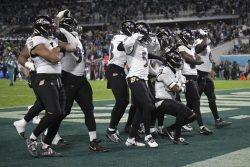 JACKSONVILLE, Fla. (AP) — Lamar Jackson threw a touchdown pass and made the play of night when he avoided a sack and threw to Isaiah Likely near the goal line, and the Baltimore Ravens clinched a postseason berth with a 23-7 victory at Jacksonville. The Ravens won their fourth in a row and moved a step closer to securing the No. 1 seed and home-field advantage throughout the AFC playoffs. The Jaguars lost their third straight — all against AFC North teams — and are now tied with Houston and Indianapolis atop the AFC South. Self-inflicted mistakes were a common thread in Jacksonville’s skid.