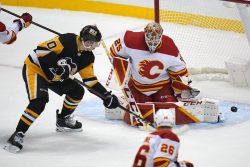 PITTSBURGH (AP) – Jacob Markstrom stopped 45 shots for his second shutout in his last three starts, and the Calgary Flames beat the Pittsburgh Penguins 4-0. áMarkstrom recorded a shutout for the second time in five games and the 10th shutout of his career. Markstrom, in his 12th NHL season and second with the Flames, has stopped 136 of his last 137 shots faced. Johnny Gaudreau scored his first of the season in the opening period, and Blake Coleman, Dillon Dube and Milan Lucic scored in the third as Calgary pulled away and won all five games of its road trip. The Flames never trailed during the road trip – they led for 234:05 overall – and outscored the opposition 21-7 on the trip.