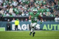 PHILADELPHIA (AP) — Saquon Barkley is down to his final game to try to break Eric Dickerson’s season rushing record. The NFL rushing leader with 2,005 yards, Barkley is only 101 yards away from topping Dickerson’s mark. Dickerson set the record of 2,105 yards rushing in 1984 with the Los Angeles Rams. Barkley might not get the chance to set the record if the Eagles rest him Sunday against the New York Giants. The Philadelphia Eagles clinched the NFC East title and the No. 2 seed with a rout over Dallas, which makes the season finale essentially a glorified preseason game. Coach Nick Sirianni will likely rest his starters.