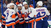 TAMPA, Fla. (AP) – The New York Islanders have opened their semifinal series by knocking off the defending Stanley Cup champs. Semyon Varlamov made 30 saves and the Isles got goals from Mathew Barzal and Ryan Pulock to beat the Lightning, 2-1 in Tampa. Varlamov blanked Tampa Bay until Brayden Point netted a power-play goal in the final minute. Varlamov won his fourth straight playoff start, joining teammate Ilya Sorokin as only the third pair of netminding teammates to have personal winning streaks of at least four games in a single postseason. Barzal scored for the fourth time in five games, making it 1-0 on a breakaway in the second period following a bad pass by Lightning captain Steven Stamkos. Pulock doubled New York’s lead with a shot from the point that eluded Andre Vasilevskiy, who was otherwise brilliant in net. The Islanders will carry a four-game winning streak into Game 2 on Tuesday in Tampa.